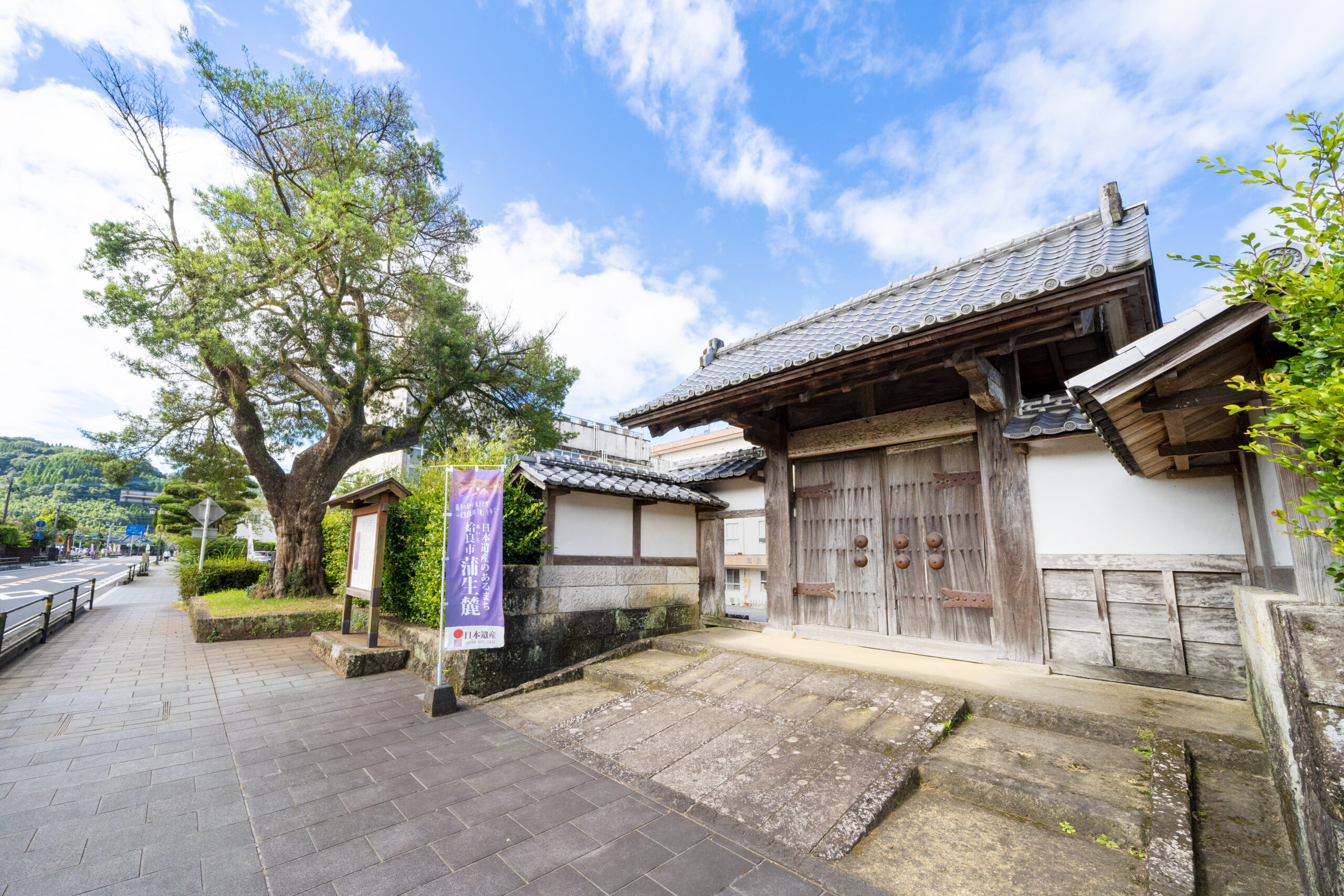 蒲生地頭御仮屋の正門で、文政9年(1826)に再建された。反り瓦屋根の両脇には小屋根が、前方には袖が出ていて、乳鋲を打った観音開きの大扉や不浄門などに当時の面影を見ることができる。
